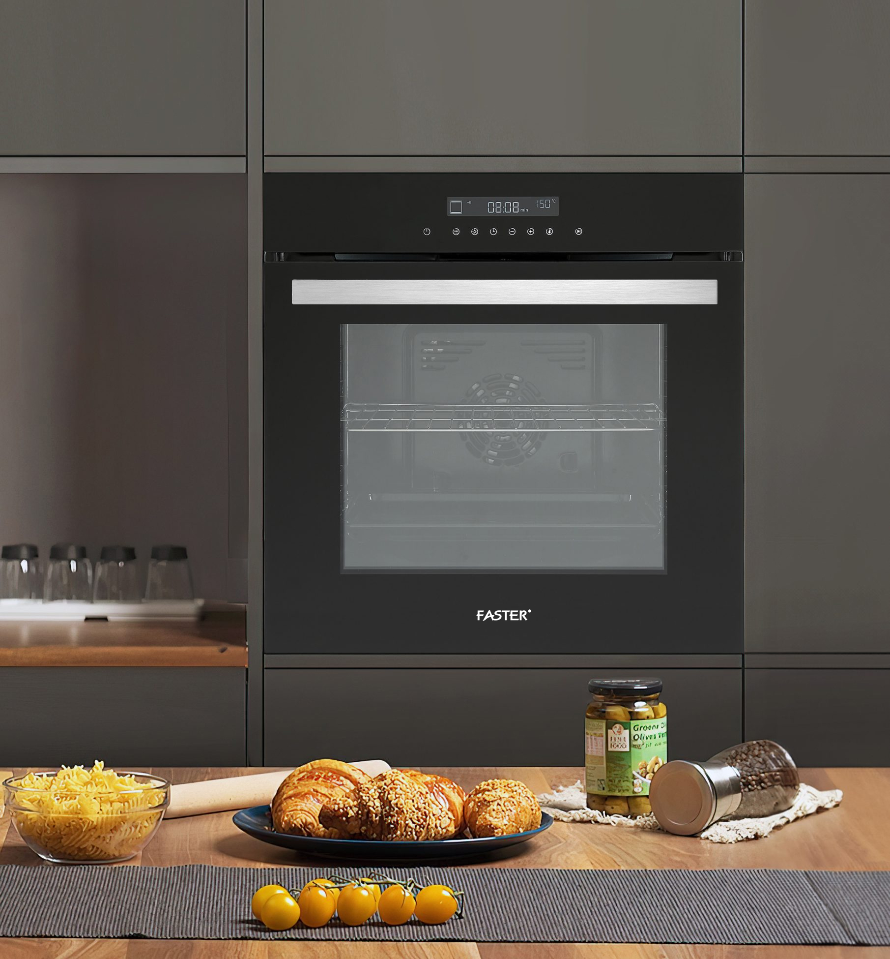 Lò nướng Faster FS OV7210B được thiết kế âm tủ giúp tiết kiệm được không gian bếp khi được lắp đặt vào những vị trí như hộc tủ hay ngăn chứa. Ngoài ra ở dưới bảng điều khiển có tay cầm bằng hợp kim nhôm chắc chắn