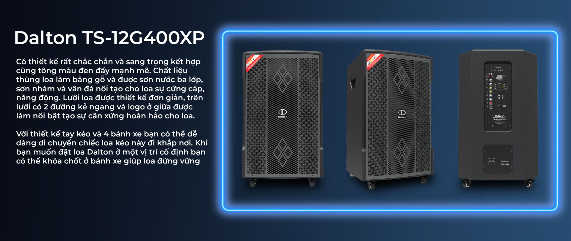 TS-12G400XP phù hợp cho không gian gia đình, ngoài sân vườn, hoặc cho các chuyến đi chơi xa cần di chuyển nhiều. Sở hữu đầy đủ tính năng nhỏ gọn, chất âm hay kèm micro không dây hút âm tốt, độ nhạy cao mang đến cho bạn những trải nghiệm âm thanh chân thực nhất. Đây là sản phẩm ấn tượng của thương hiệu Dalton đến từ Việt Nam