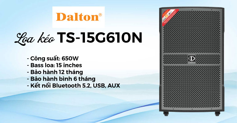 TS-15G610N sử dụng bình ắc quy 12V/12Ah, cho thời gian hoạt động liên tục từ 2 đến 5 giờ, đáp ứng nhu cầu sử dụng trong các buổi tiệc dài hoặc hoạt động ngoài trời. Thời gian sạc đầy chỉ từ 4-6 giờ, đảm bảo bạn luôn sẵn sàng cho mọi cuộc vui. Với kích thước (DxRxC) 44,5 x 41,5 x 77,2 cm và trọng lượng 31,6 kg, chiếc loa này không chỉ dễ dàng di chuyển mà còn phù hợp với mọi không gian sử dụng.