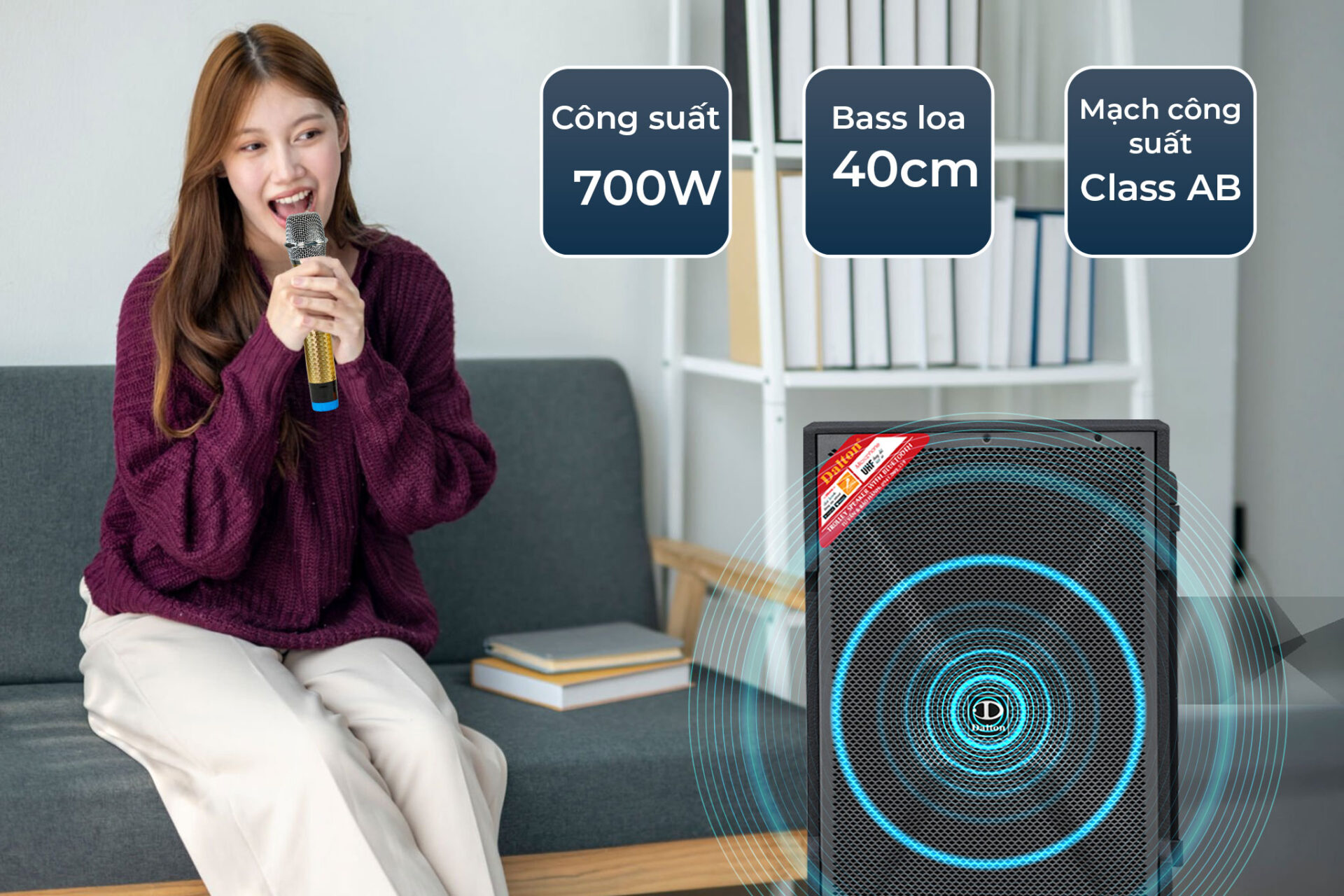 Công nghệ âm thanh sở hữu mạch công suất Class AB giúp loa đạt công suất lên đến 700W cực sôi động âm thanh to, rõ ràng và cực kì sôi động, các bạn có thể thỏa sức đam mê karaoke hoặc nghe nhạc với mẫu loa này