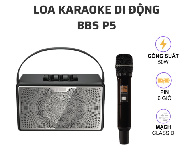Loa karaoke di động xách tay BBS P5 được trang bị bộ xử lý âm thanh DSP với bộ khuếch đại class D hiệu suất cao. BBS P5 còn được tích hợp hiệu ứng kép Eco Reverd mang lại chất lượng âm thanh tuyệt vời.