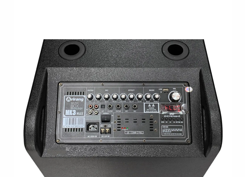 Một điểm đặc biệt của loa kéo bass 40 3 đường tiếng Arirang MK3 MAX là bộ xử lý âm thanh kỹ thuật số DSP (Digital Signal Processing) tích hợp sẵn. Bộ xử lý này không chỉ tái hiện âm thanh một cách trung thực, rõ ràng. Mà còn giúp loại bỏ những tiếng hú rít thường gặp khi sử dụng micro. Đặc biệt, loa có hai bộ DSP riêng biệt: một cho nhạc và một cho micro, giúp tối ưu hóa âm thanh ở từng phần riêng biệt, mang đến trải nghiệm nghe nhạc và hát karaoke tuyệt vời nhất.