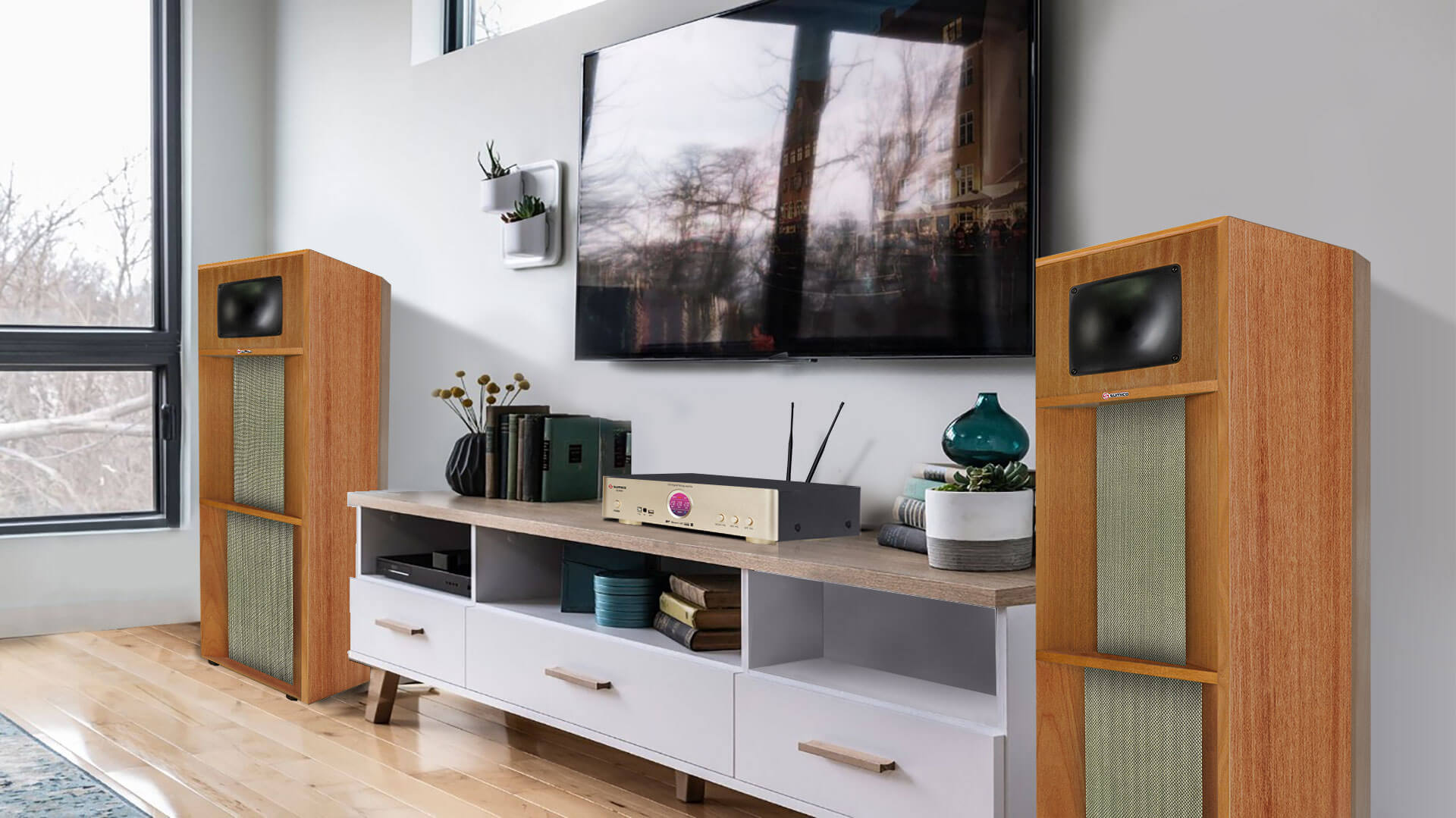 - Hai củ loa Mid 16,5 cm cung cấp dải âm trung ấm áp và rõ ràng, vang xa một cách rõ nét.