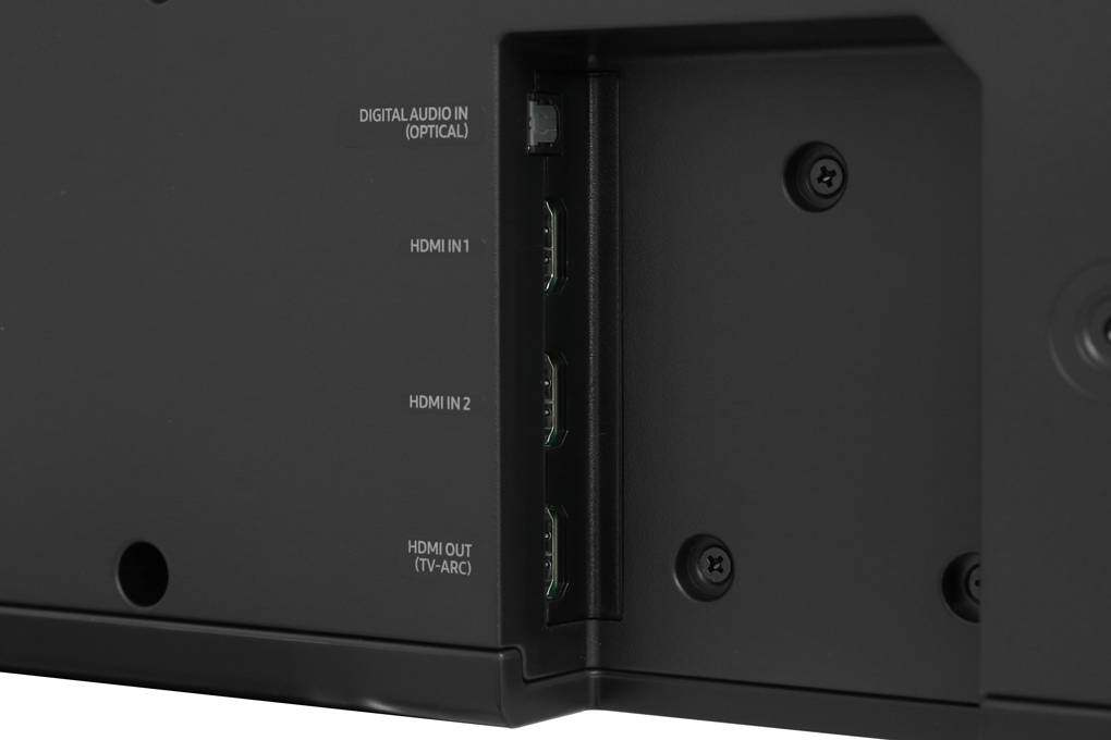 Cổng HDMI, HDMI (ARC), Optical, Audio in (cổng 3.5mm), Bluetooth kết nối loa thanh với tivi cùng nhiều thiết bị khác linh hoạt, tiện dụng. Trong đó, cổng HDMI cho bạn trải nghiệm âm thanh ấn tương với hình ảnh đạt chuẩn nét 4K sinh động, cổng Optical kết nối loa với tivi cho tốc độ truyền tải âm thanh nhanh, tốt.