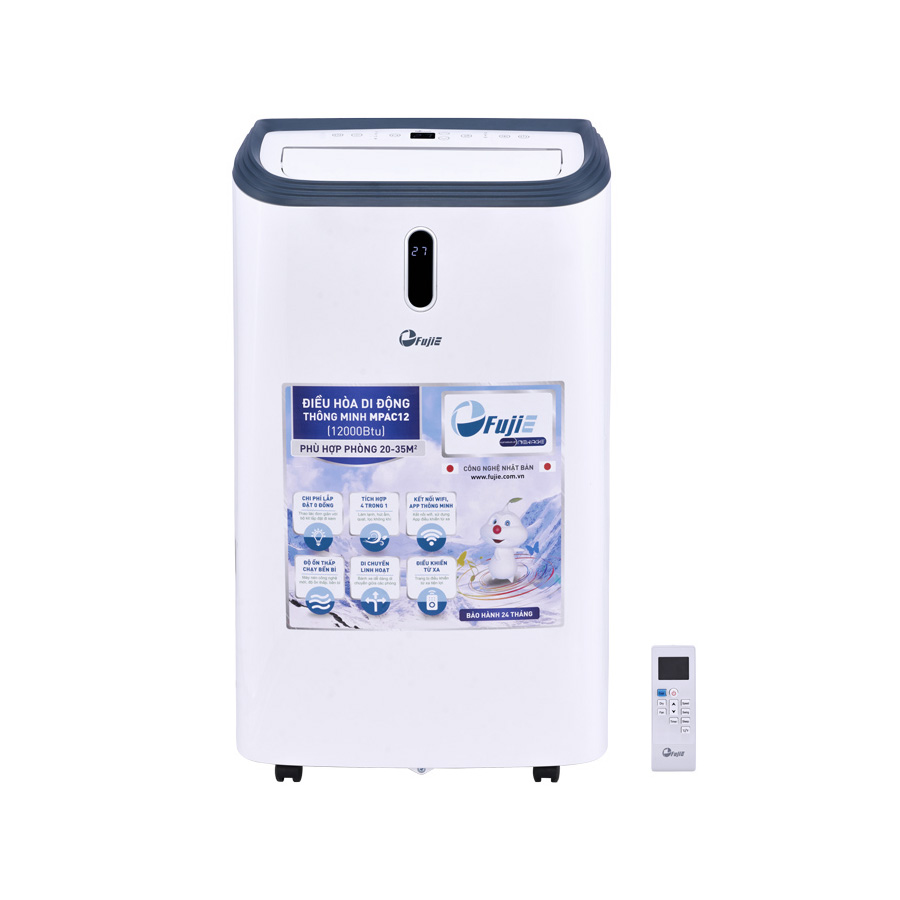 Điều hòa di động FujiE MPAC12 được áp dụng công nghệ sản xuất của Nhật Bản cho khả năng làm lạnh nhanh, công suất làm lạnh đạt 12.000 BTU sẽ phù hợp sử dụng cho không gian phòng kín có diện tích từ 20 – 35 m2.