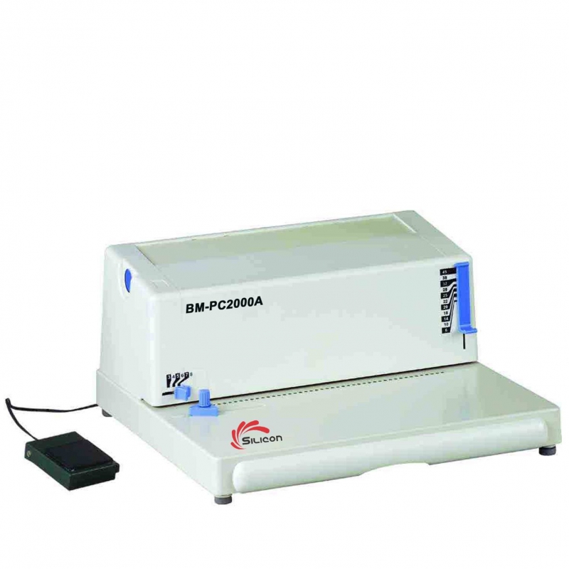 Silicon BM-PC2000A đóng lỗ giấy bằng tay, với bước răng 4:1, có thể đục được 25 tờ / lần với lỗ đóng hình tròn. Máy có khổ giấy đóng A4, chức năng điều chỉnh lề giúp những cuốn sổ ngay ngắn hơn. Máy đo lượng giấy để xác định kích cỡ lò xo được dùng, khay chứa giấy thải lớn.
