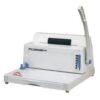 Hơn nữa, máy được thiết kế đóng lỗ giấy bằng tay, cùng bước răng 4:1, có thể đục được 25 tờ / lần với lỗ đóng hình tròn, máy có khổ giấy đóng A4, chức năng điều chỉnh lề giúp những cuốn sổ ngay ngắn hơn, máy cũng đo lượng giấy để xác định kích cỡ lò xo được dùng, khay chứa giấy thải lớn.