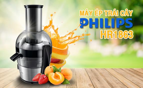 Máy ép trái cây Philips HR1863 thiết kế nhỏ gọn, chắc chắn với vỏ thân máy bằng Alluminium, công suất mạnh giúp máy hoạt động với tốc độ nhanh và ép được nhiều nước.