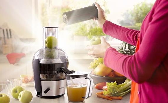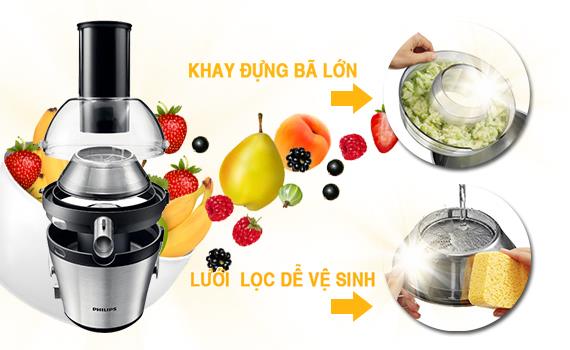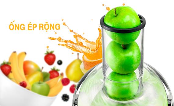 Philips HR1863 có ống tiếp nguyên liệu với kích thước lớn 75 mm giúp bạn ép những loại rau quả, trái cây như cà chua, táo hay cà rốt…