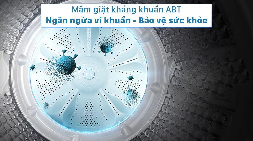 Với kháng sinh kháng khuẩn ABT, mâm giặt được phun một dung dịch đặc biệt, kháng khuẩn đến 99,99% và ngăn nấm mốc phát triển bên trong lồng giặt. Bảo vệ sức khỏe toàn diện cho người sử dụng. Sản phẩm thích hợp cho các gia đình có con nhỏ, người dễ bị kích ứng với vi khuẩn, bụi bẩn.