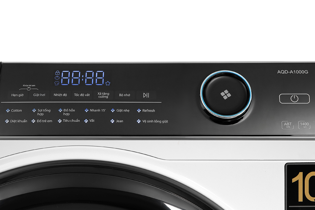 Máy giặt Aqua Inverter 10 KG AQD-A1000G W không chỉ tiết kiệm điện nước, vận hành êm ái ổn định mà nó còn sở hữu lồng giặt lớn giúp bạn dễ dàng lấy quần áo, giảm tối đa mức xoắn rối quần áo sau khi giặt. Bên cạnh đó, với chế độ giặt nước nóng kết hợp với vòng đệm kháng khuẩn ABT giúp loại bỏ nấm mốc và vi khuẩn hiệu quả… Đây là một sản phẩm đáng cân nhắc cho sự lựa chọn sắp tới của gia đình bạn.