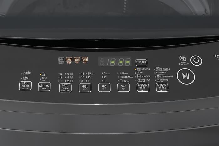 – Bảng điều khiển nút nhấn thể hiện bằng song ngữ Anh – Việt giúp dễ dàng tiếp cận nhiều đối tượng sử dụng. Thông số về thời gian cùng chương trình mà bạn chọn sẽ hiển thị trên màn hình LED.