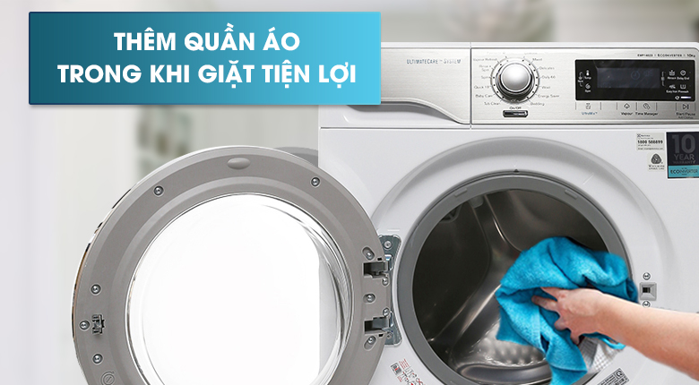 Bạn có thể thêm quần áo khi máy đã hoạt động được 10 – 15 phút đầu, hoặc khi đèn Add Clothes còn sáng.
