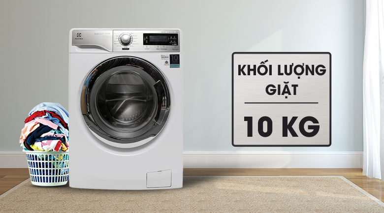 Với khối lượng giặt lên đến 10 kg quần áo, máy thích hợp với các gia đình có từ 6 thành viên trở lên.