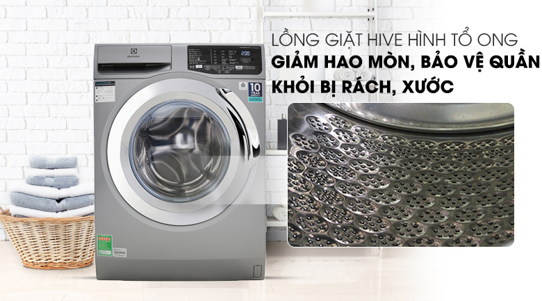 Máy giặt này được trang bị lồng giặt Hive với các gờ cong uốn mềm nâng cao hiệu quả giặt sạch lên mức tối đa, đánh bật các vết bẩn cứng đầu tốt hơn mà không gây hư hại, mòn quần áo.