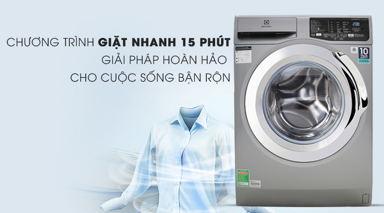 Với chương trình giặt nhanh 15 phút của máy giặt Electrolux Inverter. Đây là một chương trình giúp bạn nhanh chóng giặt sạch chiếc áo sơ mi hoặc khoảng dưới 2 kg quần áo hàng ngày chỉ trong tích tắc, vô cùng tiện lợi.