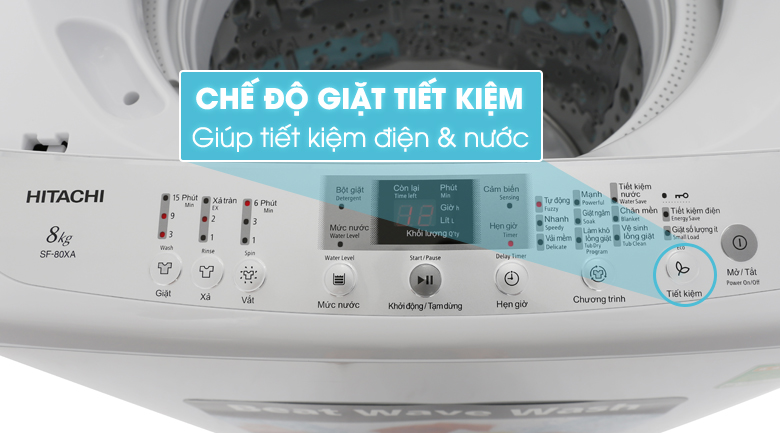 Máy giặt Hitachi SF-80XA 220-VT (WH) với tính năng giặt tiết kiệm cho phép tiết kiệm điện và nước trong quá trình giặt, giúp bạn có thể tiết kiệm chi phí mà vẫn đảm bảo quần áo được giặt sạch tối ưu.
