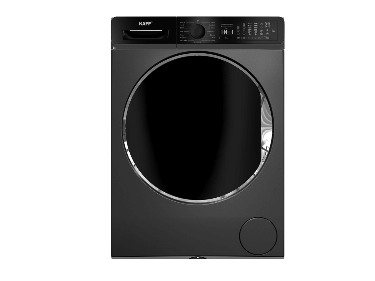 Máy giặt Kaff KF-MFC1062T3B sở hữu thiết kế cửa trước hiện đại với thân máy màu đen và cửa kính đen tạo điểm nhấn ấn tượng và dễ kết hợp với nhiều kiểu thiết kế nội thất.