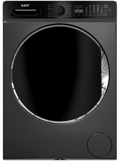 Máy giặt Kaff KF-MFC1269T3B sở hữu thiết kế cửa trước hiện đại với thân máy màu đen và cửa kính đen tạo điểm nhấn ấn tượng và dễ kết hợp với nhiều kiểu thiết kế nội thất.