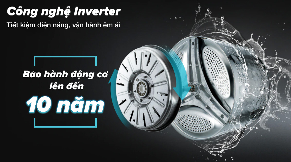 – Được trang bị động cơ truyền động trực tiếp kết hợp cùng công nghệ Inverter giúp máy giặt vận hành êm ái, tiết kiệm điện năng.