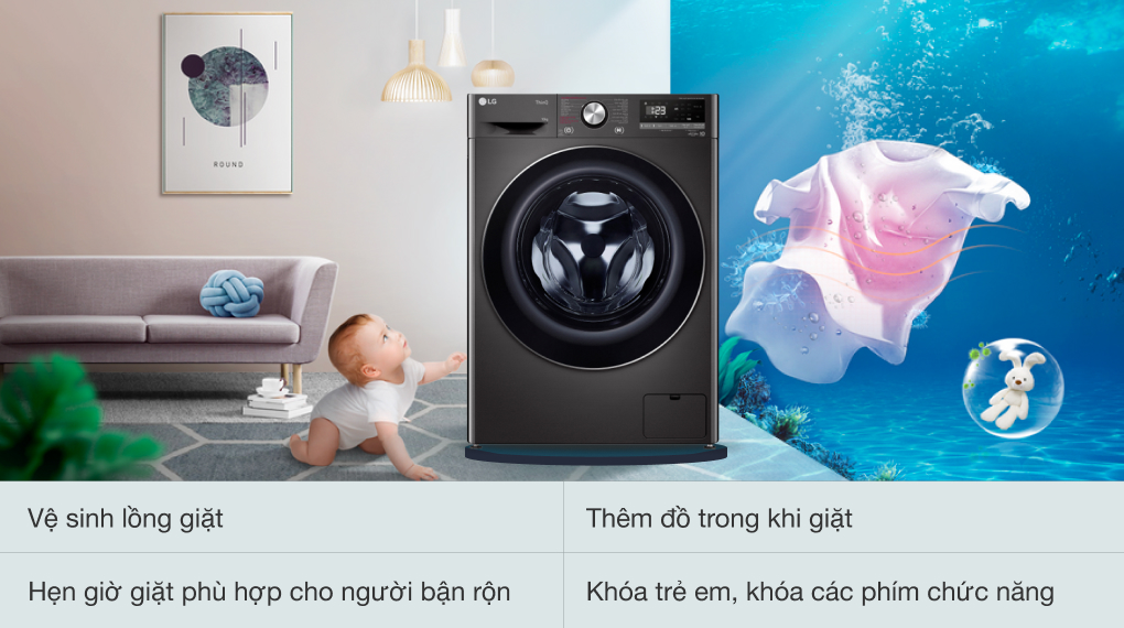 – Tích hợp sẵn 14 chương trình giặt phù hợp cho nhu cầu giặt giữ khác nhau: TurboWash 59, giặt hơi nước đồ trẻ em, giặt ngừa dị ứng, giặt nhanh 14 phút,… (xem chi tiết tại thông số kỹ thuật). Chương trình giặt ngừa dị ứng giúp loại bỏ các mạt bụi có thể gây dị ứng hoặc các vấn đề về hô hấp.