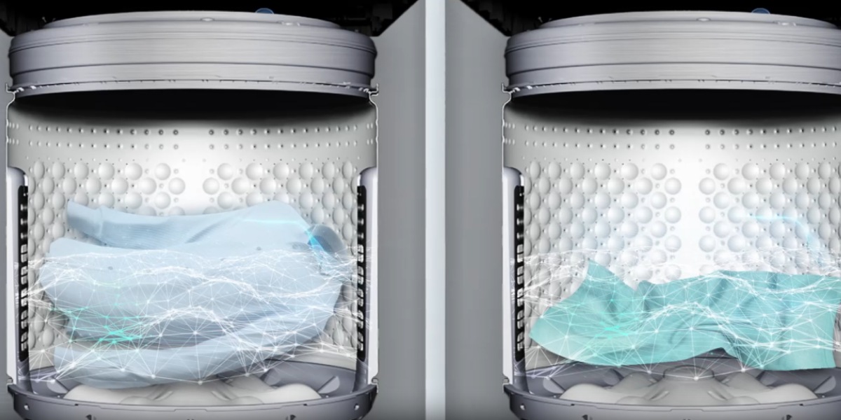 – Công nghệ AI DD bảo vệ sợi vải: AI DD tự động phát hiện khối lượng và loại vải để tự động tối ưu chuyển động, giúp bảo vệ sợi vải không bị hư hại và giữ cho quần áo luôn bền màu, mềm mại.