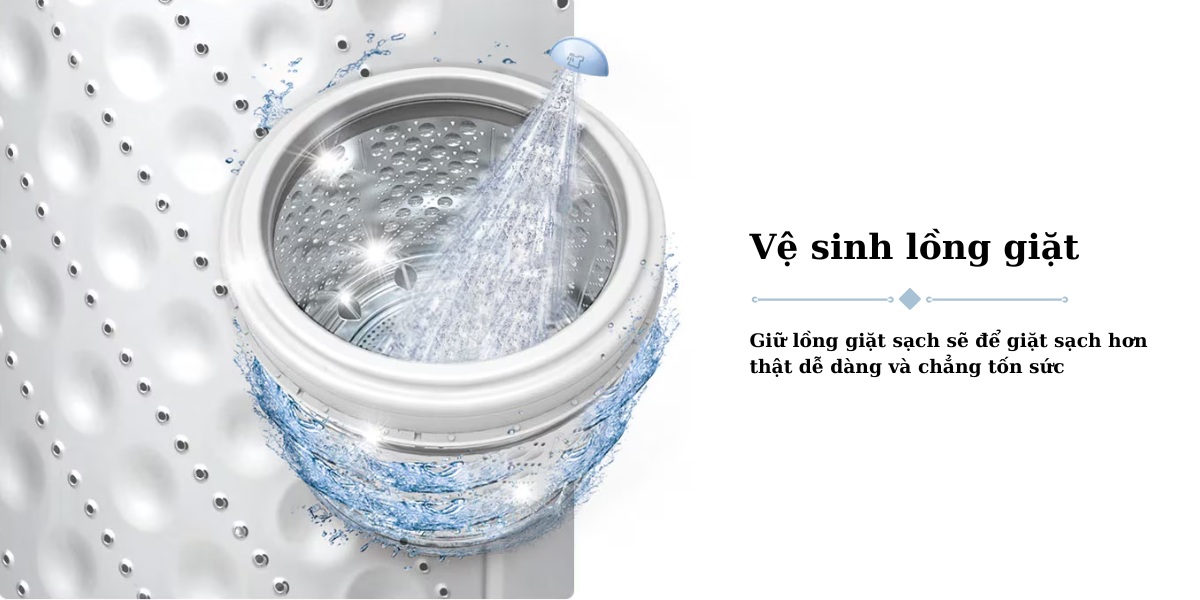 – Vệ sinh lồng giặt: Giúp loại bỏ cặn bẩn, vi khuẩn bám trong lồng giặt, đảm bảo quần áo luôn được giặt sạch sẽ trong những lần giặt tiếp theo.
