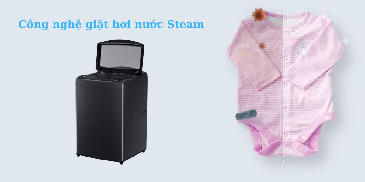 – Công nghệ giặt hơi nước Steam: Công nghệ này giúp loại bỏ vi khuẩn, các tác nhân gây dị ứng và làm giảm nhăn quần áo, từ đó bạn tiết kiệm thời gian ủi sau khi giặt sạch.