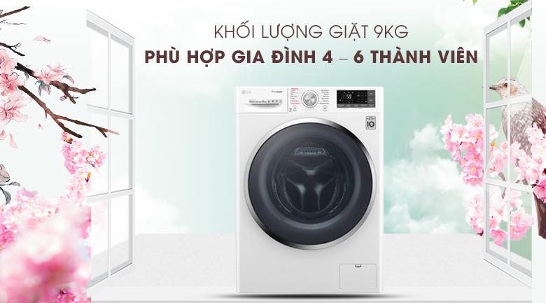 Với những hộ gia đình có khoảng từ 6 thành viên trở lên, máy giặt LG model FC1409S4W là lựa chọn phù hợp khi đáp ứng khối lượng giặt quần áo đến tận 9kg.