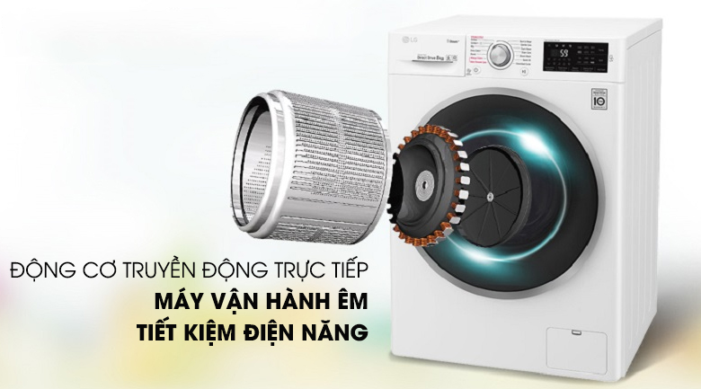 Vì động cơ được gắn trực tiếp với lồng giặt, nên máy sẽ không cần tốn nhiều điện năng để vận hành dây curoa – là thiết bị trung gian giữa lồng giặt và động cơ. Do vậy, máy sẽ hoạt động êm ái và đạt tốc độ vắt cao hơn.