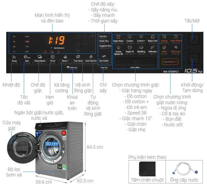Tổng quan – Máy giặt sấy Panasonic Inverter 10.5 Kg NA-V105FC1LV