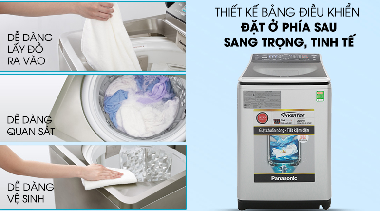 Máy giặt Panasonic Inverter 11.5 Kg NA-FS11V7LRV mang sắc xám bạc tinh tế và sang trọng. Đi cùng bảng điều khiển đặt ở phía sau độc đáo và hiện đại, máy giặt còn giúp bạn dễ dàng trong mọi thao tác lấy quần áo ra vào và làm vệ sinh.
