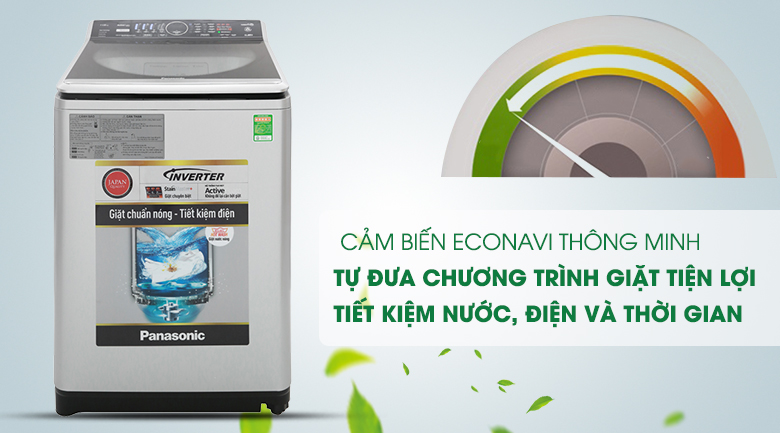 Cảm biến Econavi thông minh với khả năng cảm biến lượng đồ cần giặt, nhiệt độ nước và chất liệu vải của quần áo sẽ tự đưa ra chương trình giặt tự động phù hợp nhất, góp phần tiết kiệm điện, nước và thời gian giặt giũ.
