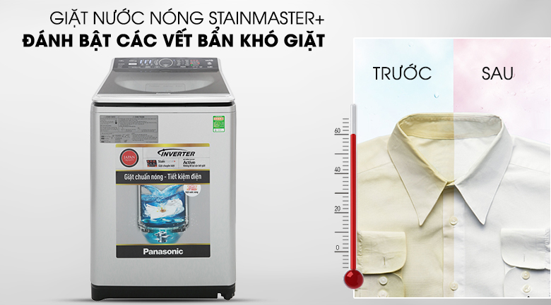 Bên cạnh khả năng loại bỏ vết mồ hôi, bùn đất và vết nước sốt thông thường, chiếc máy giặt Panasonic với công nghệ giặt nước nóng StainMaster+ có nhiệt độ tối đa lên đến 60 độ C sẽ tiêu diệt vi khuẩn và tác nhân gây dị ứng trên quần áo.