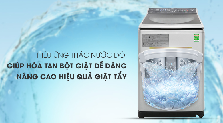Giúp hòa tan bột giặt dễ dàng, đảm bảo quần áo thấm đều nước giặt với hiệu ứng thác nước đôi Dual Power Cascade