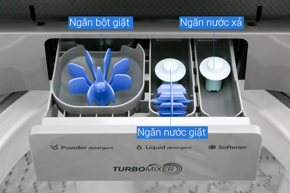 Nhờ có hộp đánh tan bột giặt Turbo Mixer này, mà bột giặt sẽ được hòa tan trước khi đổ xuống quần áo, giúp quần áo sau khi được giặt xong sẽ không còn bám cặn bột giặt, mang đến hiệu quả giặt sạch vượt trội.