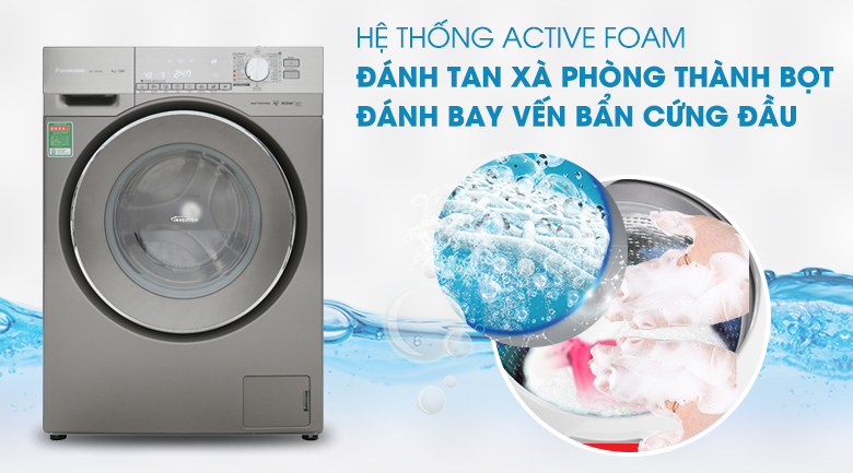 Hệ thống Active Foam giúp đánh tan xà phòng thành dạng bọt siêu mịn, nhanh chóng và dễ dàng thấm sâu vào từng sợi vải, cuốn đi những vết bẩn cứng đầu đồng thời ngăn chặn cặn bột giặt còn sót lại trên quần áo, mang đến chất lượng giặt giũ hiệu quả.