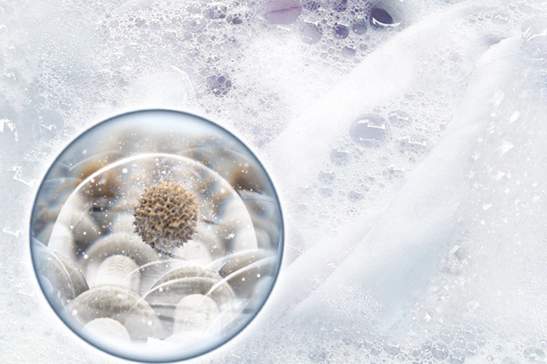 Chế độ giặt ngâm tạo điều kiện cho bong bóng xà phòng thấm sâu vào từng sợi vải, giúp làm mềm vải và đánh tan các vết bẩn cứng đầu như: cà phê, nước trà, kẹo cao su,…đòi hỏi bạn cần phải xử lý sơ trước khi cho vào máy giặt. Chế độ giặt ngâm Bubble Soak mang đến cho người dùng những bộ quần áo thơm tho, sạch sẽ mà không tốn nhiều thời gian xử lý sơ quần áo.