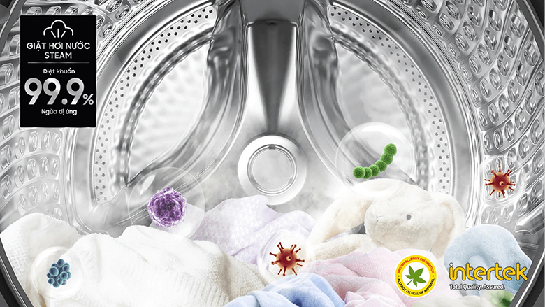 Công nghệ giặt hơi nước Hygiene Steam được trang bị trên máy giặt Samsung sử dụng hơi nước nóng để giặt giúp loại bỏ 99,9% các tác nhân gây dị ứng như nấm mốc, các vi khuẩn gây hại có trên quần áo, bảo đảm an toàn cho làn da, tránh bị dị ứng, bảo vệ sức khỏe cho cả gia đình. Đồng thời, giặt hơi nước cũng giúp quần áo giảm thiểu được những nếp nhăn, phai màu đáng kể trong quá trình giặt giũ.