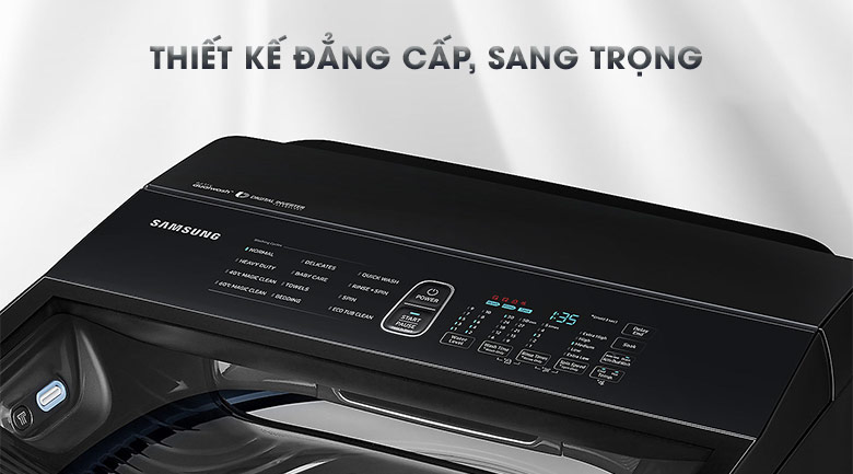 Máy giặt Samsung Inverter 18 kg WA18M8700GV/SV có thiết kế khá ấn tượng, màu đen toát lên vẻ sang trọng lịch lãm. Chiếc máy giặt này sẽ làm cho căn phòng của bạn thêm hiện đại.