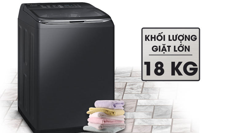 Máy giặt có khối lượng giặt lên đến 18 kg, phù hợp với gia đình trên 6 người.