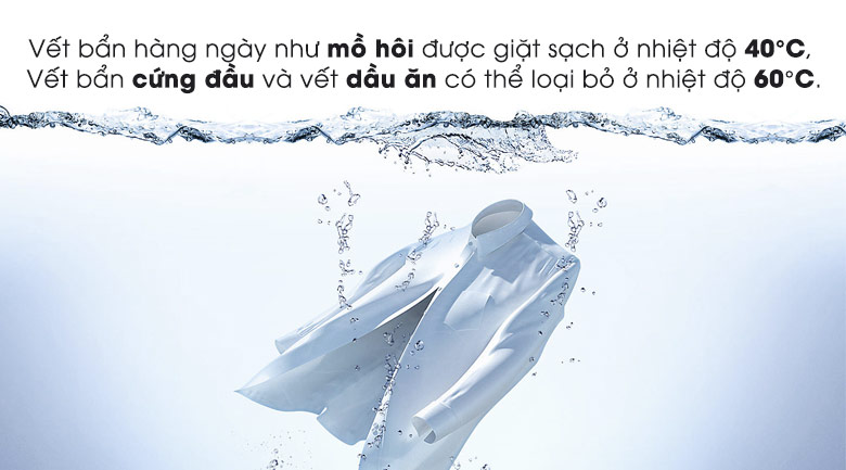 Giặt nước nóng lên đến 60 độ C giúp đánh bật vết bẩn dễ dàng