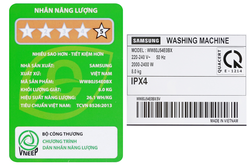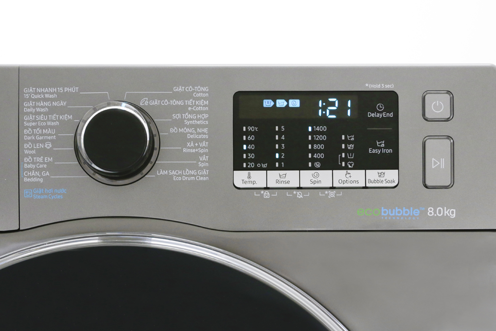 Với khối lượng giặt là 8 kg, chiếc máy giặt Samsung này đáp ứng hiệu quả nhu cầu giặt giũ của những gia đình có từ 4-5 thành viên.