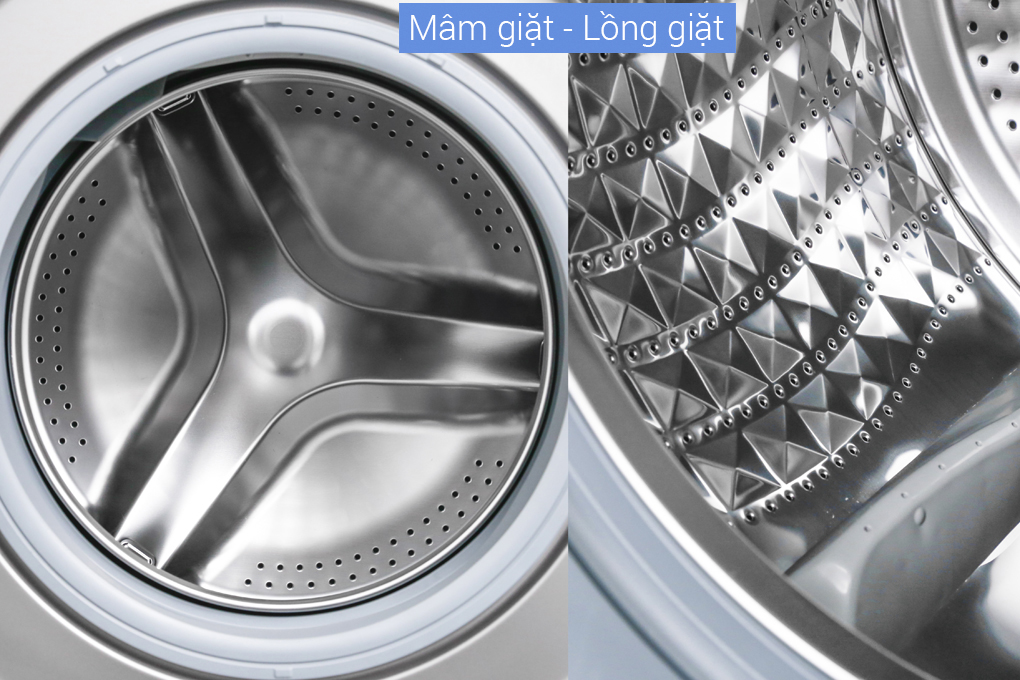 Lồng giặt được thiết kế với những lỗ thoát nước hình kim cương giúp đồ giặt được giặt sạch hiệu quả, di chuyển nhẹ nhàng để bảo vệ quần áo tối ưu trong suốt quá trình giặt. Lồng giặt kim cương này sẽ giúp chăm sóc nhẹ nhàng từng sợi vải để bạn yên tâm giặt giũ mà không lo hư tổn vải.