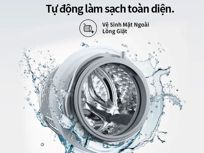Máy giặt Hisense WD90N1Y được trang bị hệ thống tự động vệ sinh lồng giặt giúp làm sạch mặt ngoài và trong của lồng giặt bằng cách phun nước mạnh mẽ trong chu trình xả. Điều này không chỉ giúp duy trì sự sạch sẽ mà còn giúp loại bỏ cặn bẩn và vi khuẩn, kéo dài tuổi thọ máy.