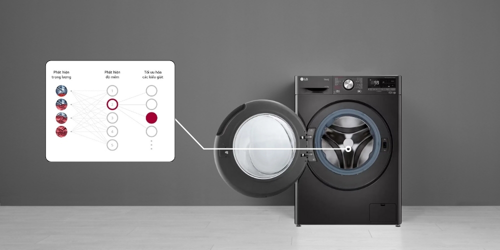 - Công nghệ AI DD bảo vệ sợi vải: Công nghệ AI DD với trí thông minh nhân tạo giúp chiếc máy giặt này có khả năng phát hiện trọng lượng và cảm nhận độ mềm của vải để tự chọn các chuyển động tối ưu cho vải, vừa làm sạch quần áo hiệu quả, vừa giảm sự hư tổn của sợi vải.