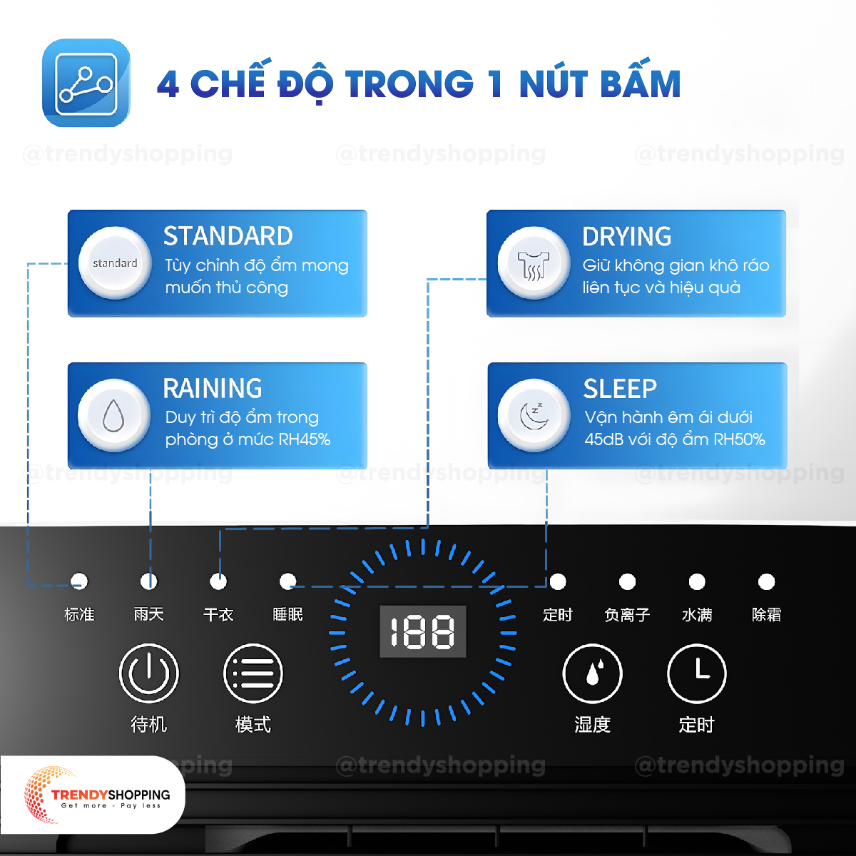- Sleep: Vận hành êm ái dưới 45dB với độ ẩm RH50%