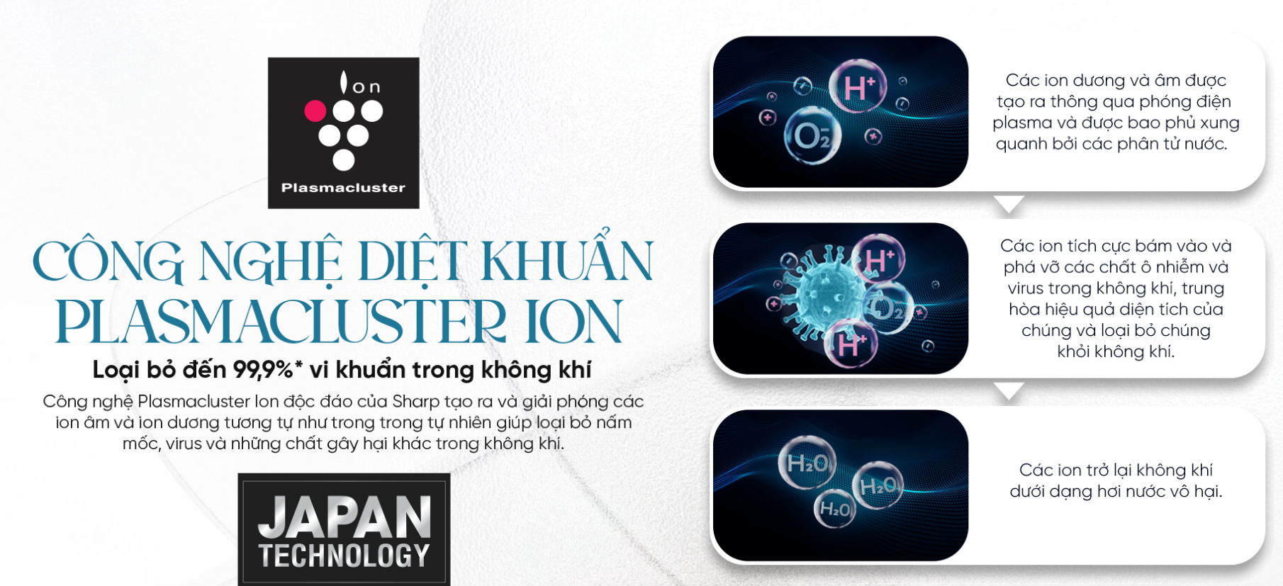 Công nghệ Plasmacluster ion – loại bỏ vi khuẩn, nấm mốc, mùi hôi hiệu quả