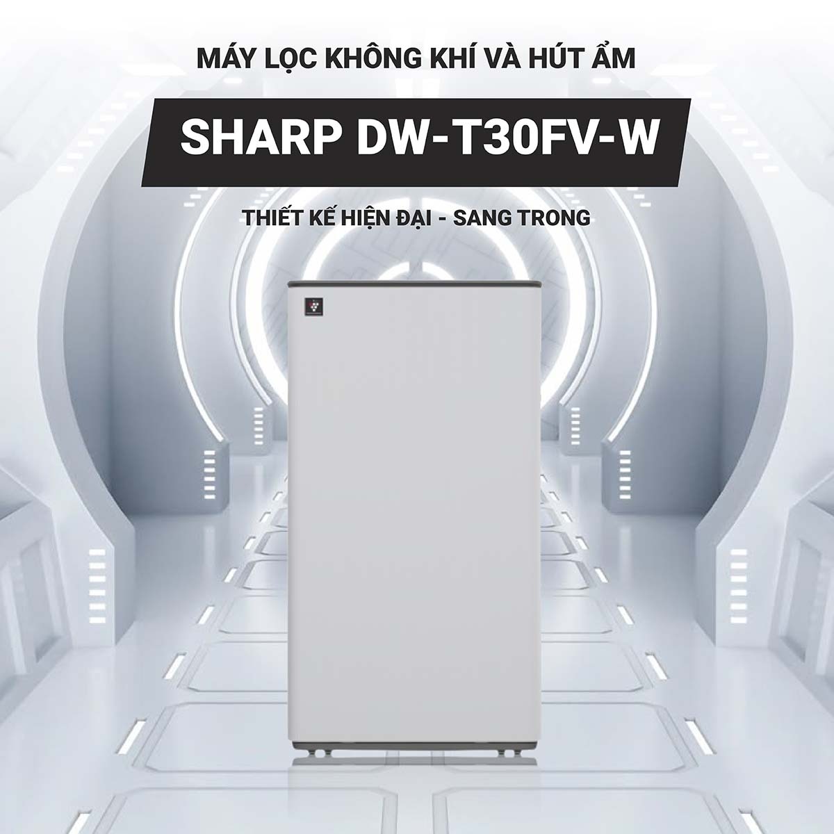 Sharp DW-T30FV-W thiết kế bảng điều khiển ngay mặt trên của máy, thuận tiện thao tác. Màn hình hiển thị độ ẩm, nhiệt độ rõ ràng, dễ dàng theo dõi tình trạng độ ẩm trong nhà.