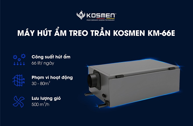 Giới thiệu về máy hút ẩm treo trần Kosmen KM-66E
